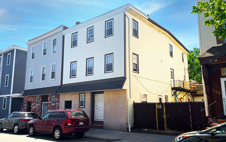 523-525 East Third Street is a three-story building in the South Boston, “Southie”, neighborhood of Boston, Massachusetts. Centrally located in the heart of Southie and less than a mile to The Seaport, the Property represents an outstanding core asset in one of the strongest real estate markets in the region. The three-story building contains five residential units plus a commercial garage. The unit matrix consists of two (2), 2-Bedroom/1-Bathroom units, one (1), 2-Bedroom/1-Bathroom units, and two (2), studio units in 3,900 square feet of living area on a 3,000 square foot parcel. The Garage offers parking for two vehicles, and three of the units have Roof Decks.  523-525 East 3rd Street is situated in an exceptional urban location in South Boston just off of East Broadway, one of the main streets in the neighborhood. The East and West sides of Broadway offer countless amenities, with endless dining, retail, and nightlife options, and an MBTA bus stop just 0.1 miles from the Property. The location offers convenient access to Boston’s best areas, including the Seaport District, Downtown Boston, Back Bay, the North End and the South End.